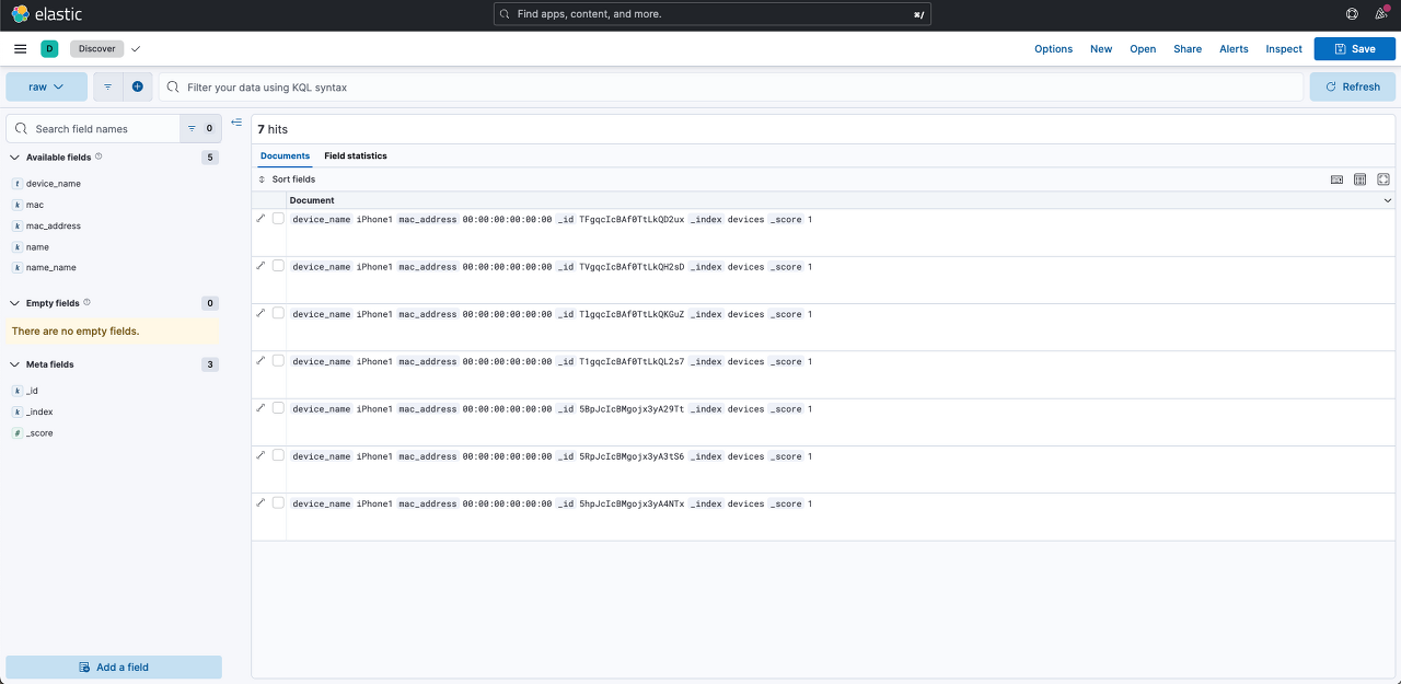 디버깅용도로 kibana를 다운로드 하여 데이터 확인